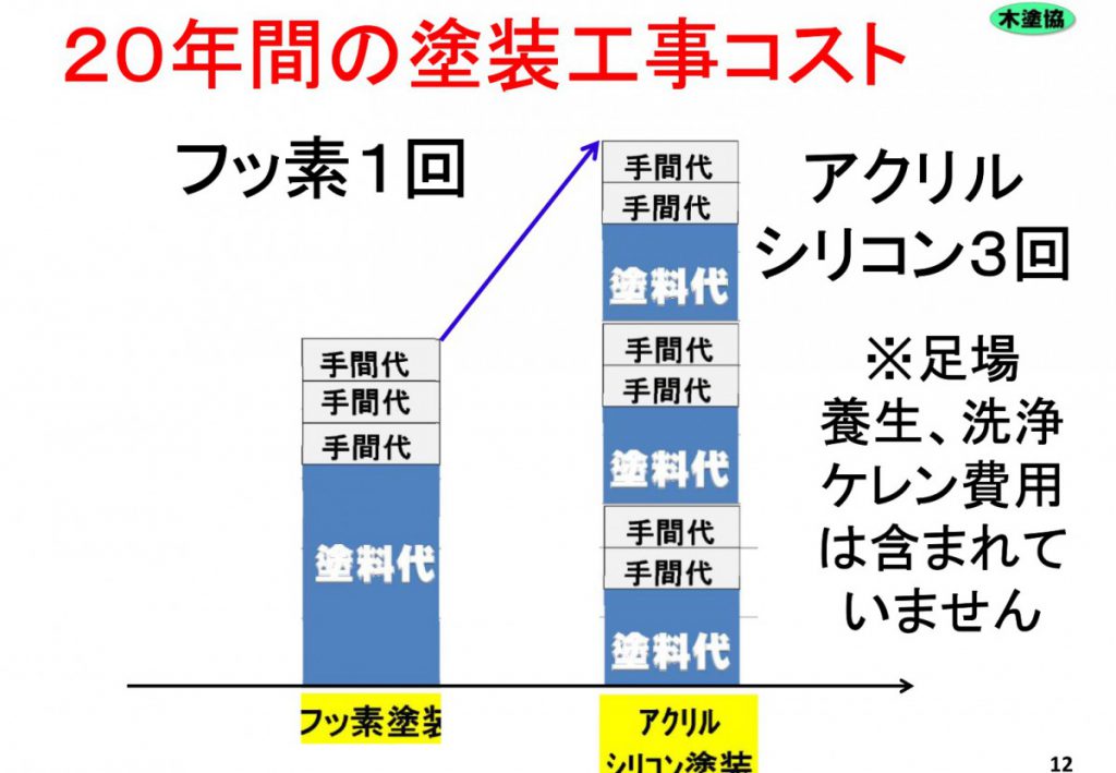 屋根、外壁塗装ーー20年間のコストーー考察ーーこの道、42年間の経験より42年前より、塗膜の耐久性は何年ですか?よく質問されて来ました。1972年より窯業サイディングの開発、営業、塗料開発の経験をしました。42年間の体験より、はっきり申し上げますが、20年間下地基板を守り、表面デザインー色とツヤ、その他の機能を維持するのに、必要な塗装回数は、以下です。断言出来ます。