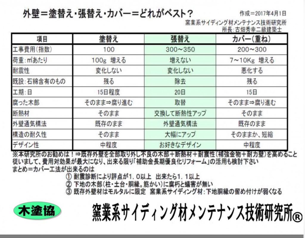 所でして、地元の大工さんに相談した所、外壁の二重張り?カバー工法を