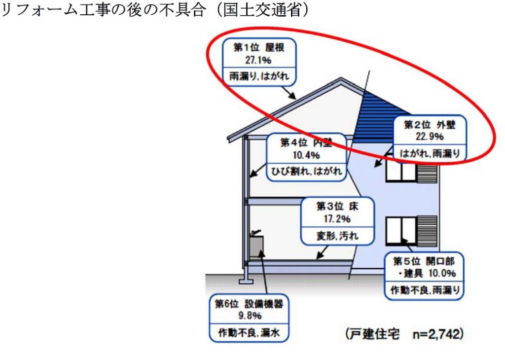 更に、国土交通省が公表のリフォーム工事後の不具合ですが、