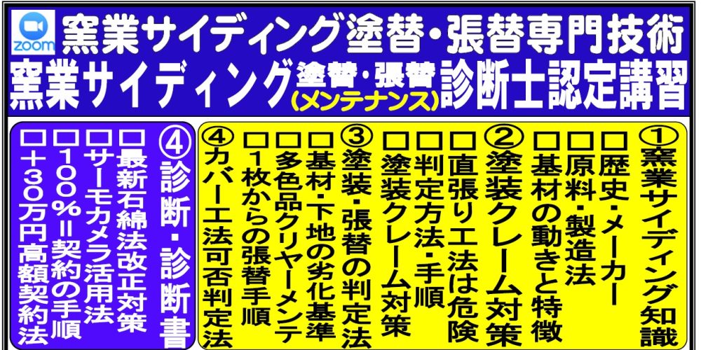 1=窯業サイディングの診断と正しい工事を行う事が出来る専門家~窯業サイディングメンテナンス診断士