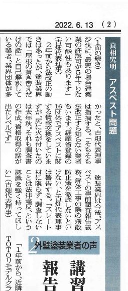 の塗装&リフォーム 解体工事前には必ず「石綿調査」と「結果=有る時の工事手順」を法令に