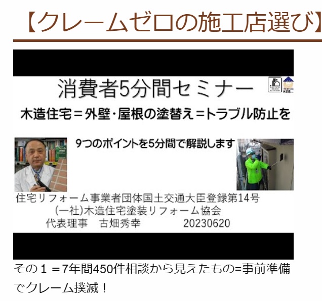 「窯業系サイディングの塗替え=満足法」5分間ビデオセミナー 9本