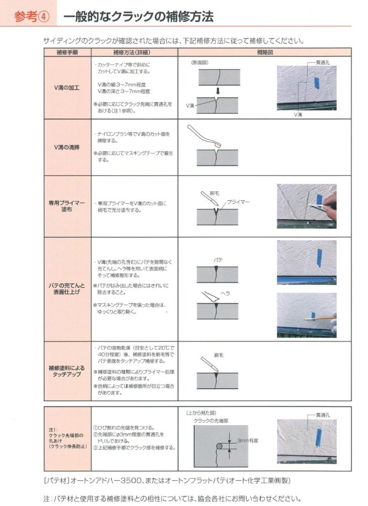クラック部はVカットしてパテ処理、塗料のタッチアップです。