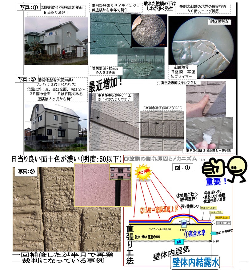 1)クレーム(ハクリ ふくれなど)が発生しても「原因」が判らない施工店が90%いること