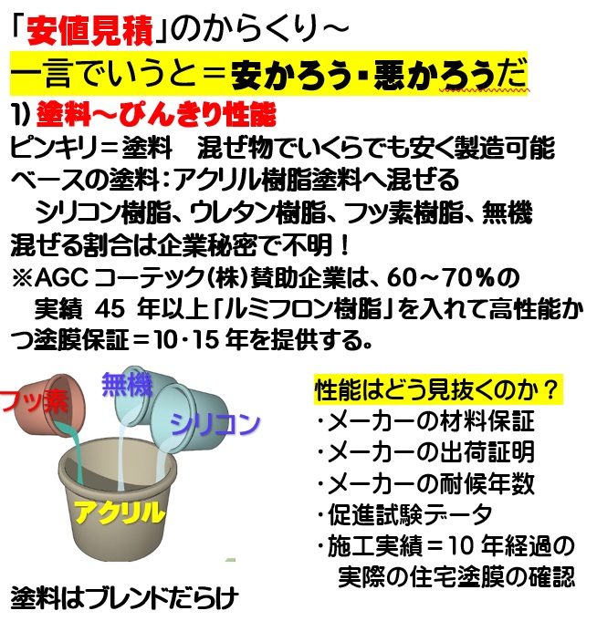 塗装工事は「一言で言えば」==>安かろうは ”悪かろう”につきます
