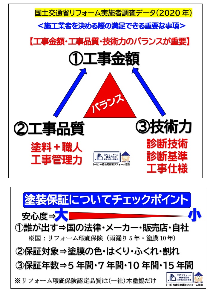 正しい保証=塗料メーカーの保証(塗膜の変退色・ハクリ・・)