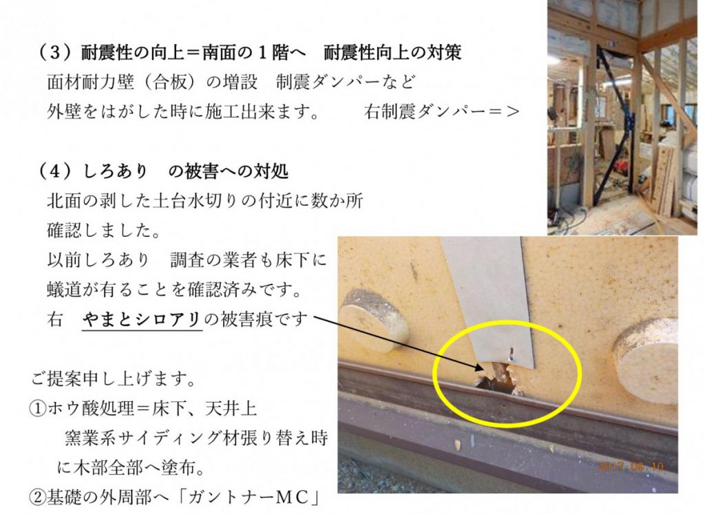 最近多い、外壁サイディングの、剥がし検査ーーシロアリの被害が有りました。