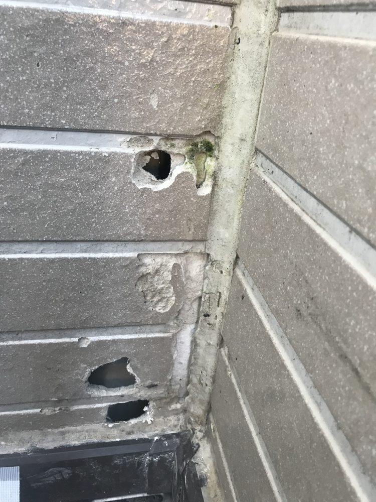 R4年(2022年) 北側バルコニー内側に外壁に穴、触ると崩れ落ちる。