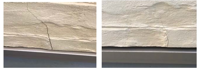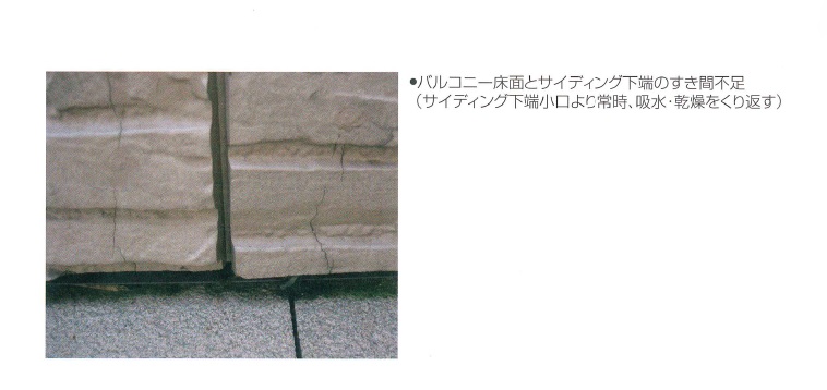 窯業サイディング材の細かな割れがベランダの外側の下の方に多数発生しています。